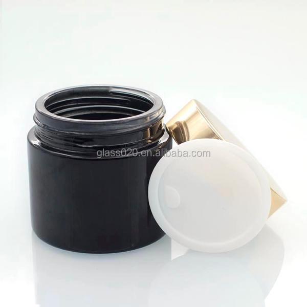 Glossy black 60g glass cream jar cosmetic face cream jar with light gold lid